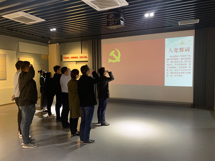 最后,全体党员在支部书记管枫同志的带领下,面对庄严的党旗,重温入党誓词,牢记初心使命。