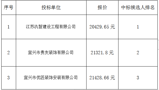 本次丁航旧房改造工程项目于2021年11月30日 09时 30 分开标,采用最低价中标法;其结果如下: